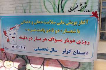 به دنبال برگزاری جلسه برون بخشی پویش سلامت دهان و دندان 1404 با شعار ((دو،دوتا یادت نره!روزی 2بار مسواک،هر بار 2 دقیقه)) و برای شروع هر چه با شکوه تر این پویش با همکاری  اداره آموزش و پرورش شهرستان اشنویه، مراسم افتتاحیه این پویش و جشن رویش دندان 6 ، در تاریخ 20 مهر ماه 1404 در مدرسه کوثر شهرستان ، با حضور معاونین و کارشناسان هر دو اداره و دندانپزشک مرکز بهداشت برگزار گردید.