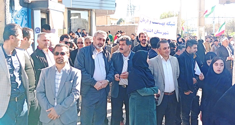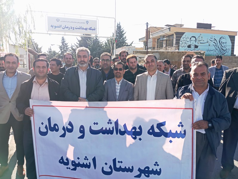در این راهپیمایی که از میدان انقلاب به مقصد چهار راه کارگر با شعارهای کوبنده استکبار ستیزی "مرگ بر آمریکا" و "مرگ بر اسرائیل" انجام شد، بیش از هفتاد نفر از کادر شبکه بهداشت و درمان اشنویه شرکت کردند.